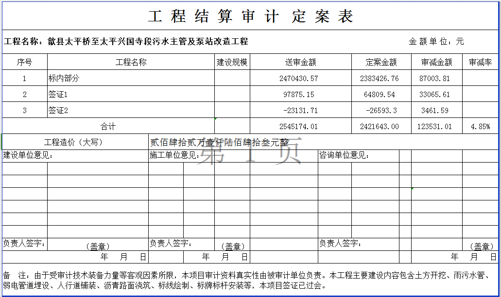 歙县太平桥至太平兴国寺段污水主管及泵站改造工程 审核定案公示