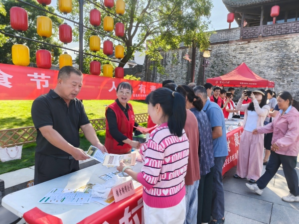 10月16日,歙县发改委、黄山徽投集团等单位,在徽州府衙广场开展世界粮食日和全国粮食安全宣传周“手拉手共倡多样美食,聚合力同创美好未来”“粮食节约,人人有责”主题宣传活动,各志愿者在街头向老百姓宣讲安徽省实施《中华人民共和国粮食安全保障法》办法等政策法规、粮食产后节约减损、营养健康等方面知识,发放爱粮节粮倡议书。宣讲活动得到路过市民、游客、来徽州古城研学小学生的积极参与和热情响应。